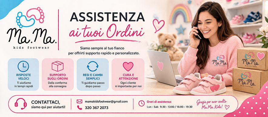 Il team di Ma.Ma. Kids Footwear è sempre a tua disposizione!