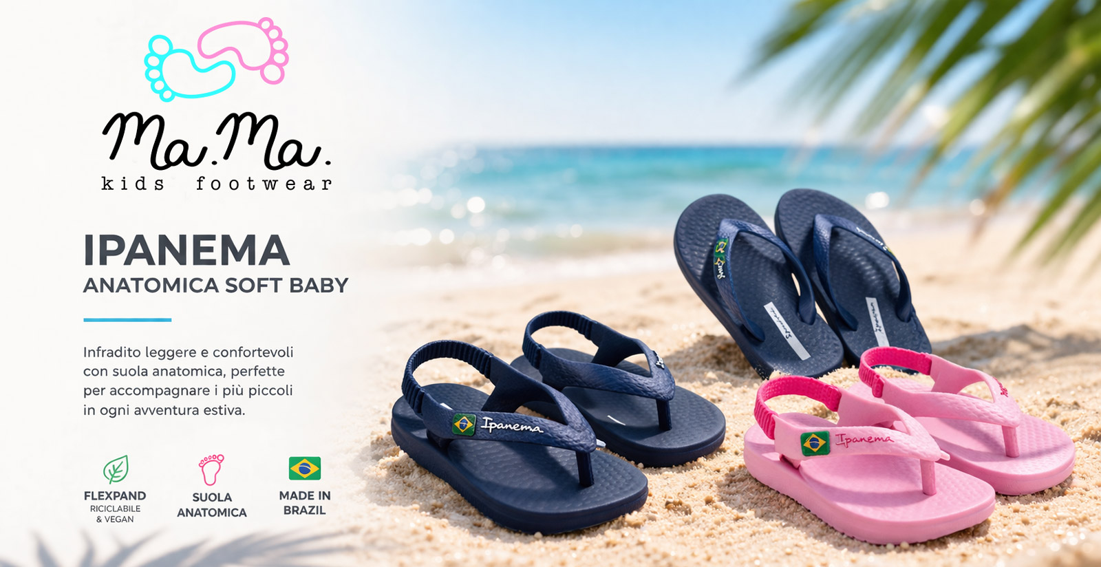 Scopri le Ipanema Anatomica Soft Baby: infradito bambino comode e leggere con suola anatomica. Perfette per mare, piscina e estate.